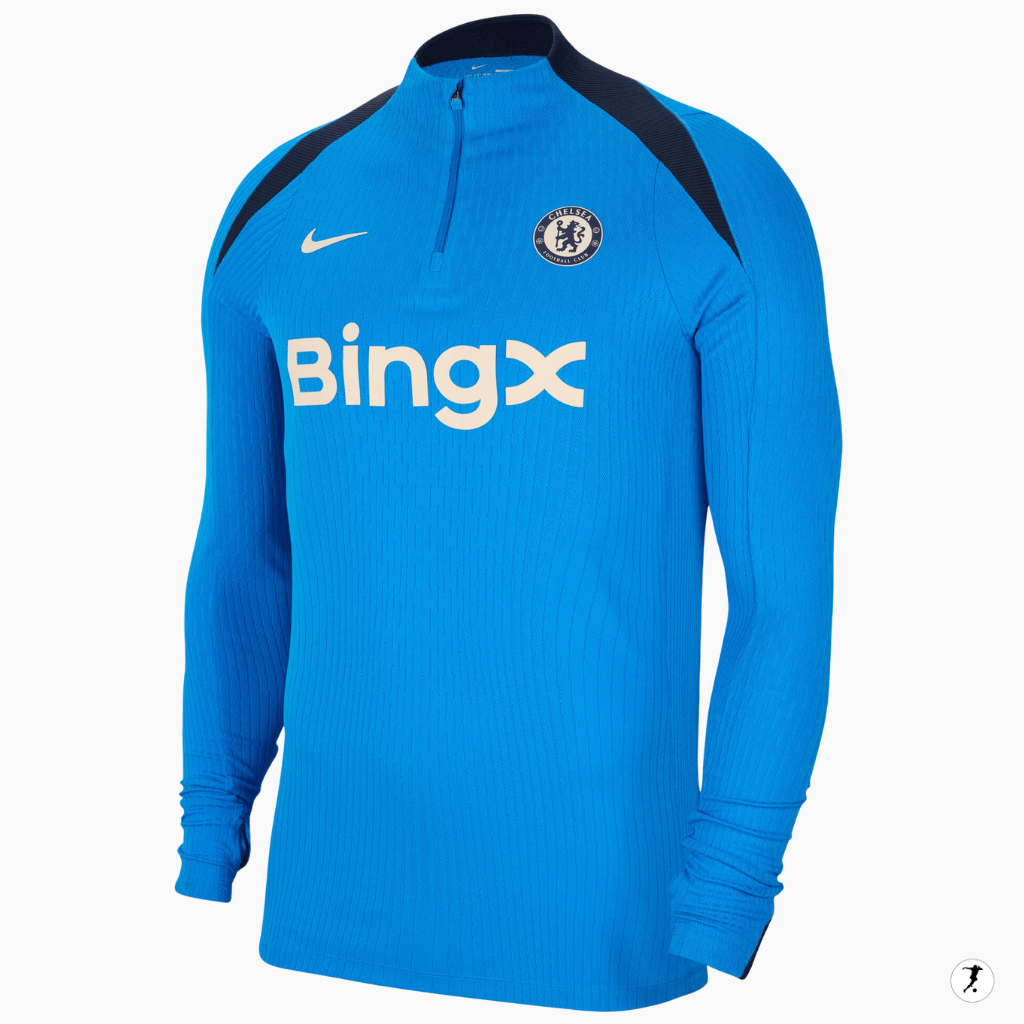 Train like the top squad with the Chelsea Nike Dri-FIT ADV Elite Drill Top – Blue. This elite-level piece is crafted with advanced Dri-FIT ADV tech for precision moisture control and breathability during intense sessions. With a sleek, slim fit and lightweight design, it’s made from 100% recycled polyester fabric. Personalize it with your name & number for a professional edge.