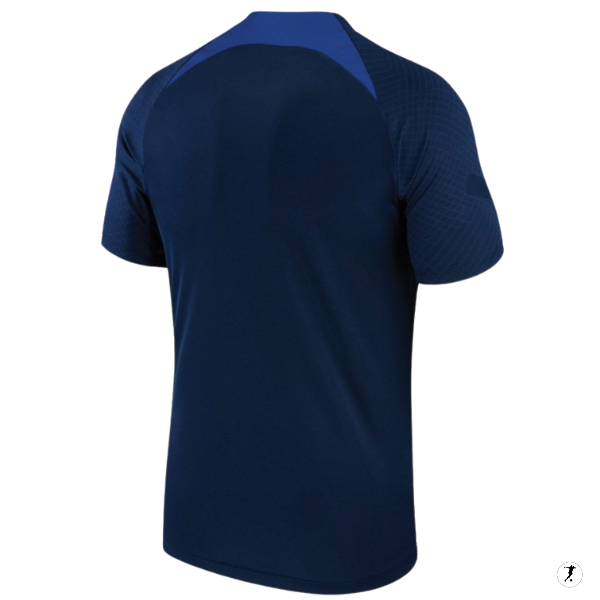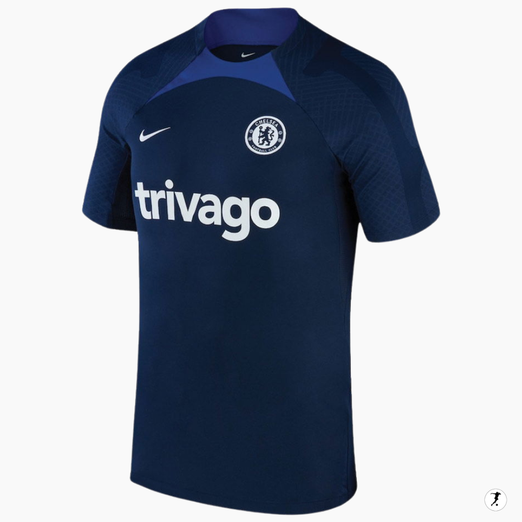 Train like the Blues in the 2022-2023 Chelsea Training Shirt – Navy. Worn by the squad during the season’s prep, this shirt features breathable Dri-FIT technology for optimal comfort and performance. Its lightweight, athletic fit is perfect for on-pitch intensity or casual wear. Made from 100% recycled polyester fabric. Personalize it with your name & number for a custom look.